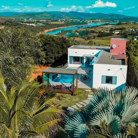 Otimo Rancho Prox. Ao Centro De Capitolio/Escarpas Villa is fitted with an equipped kitchen complete with a refrigerator, an oven, and kitchenware. Guests can dine in Cozinha da Roca, 2.3 km from the Capitolio property. Relax and enjoy a private pool and a private garden.